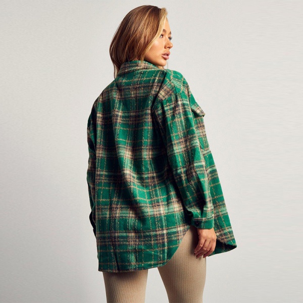 独立站外贸跨境冬季新款毛呢欧美女装衬衫POLO圆领单排扣口袋衬衣