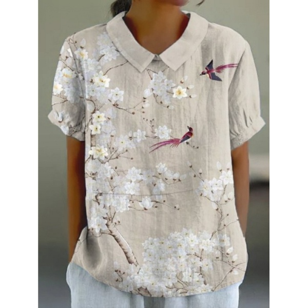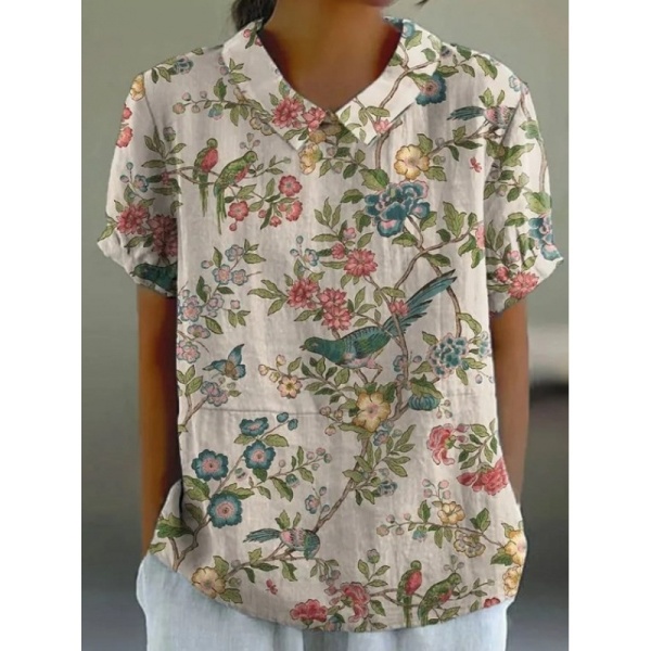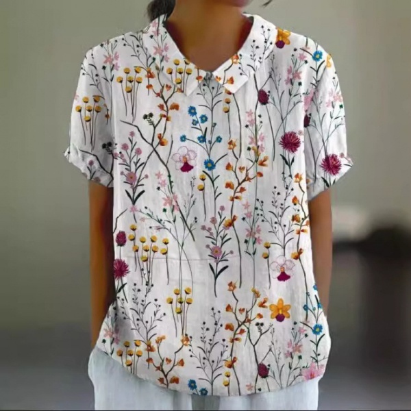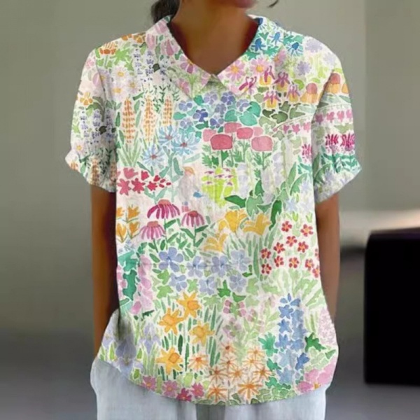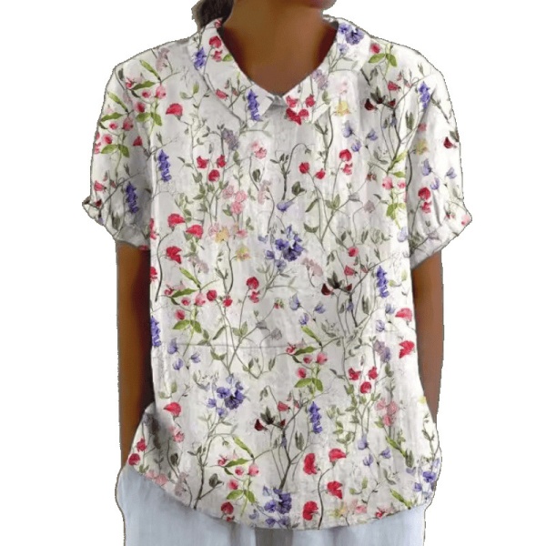 跨境外贸2024夏季女装新款亚马逊宽松印花圆领休闲大码套头女装T