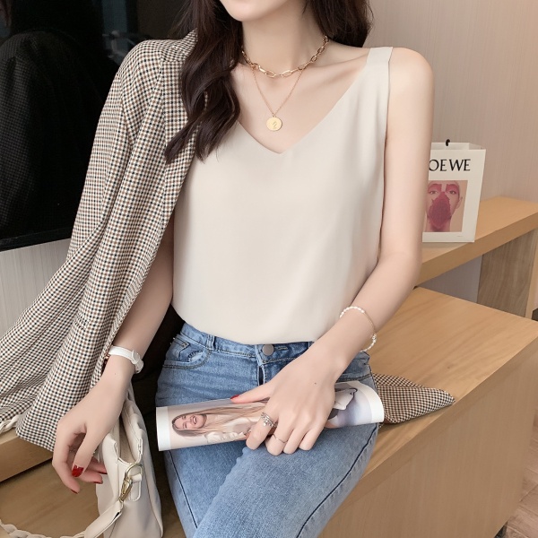 雪纺吊带背心女2024夏季v领双层宽松显瘦外穿内搭白色打底衫上衣